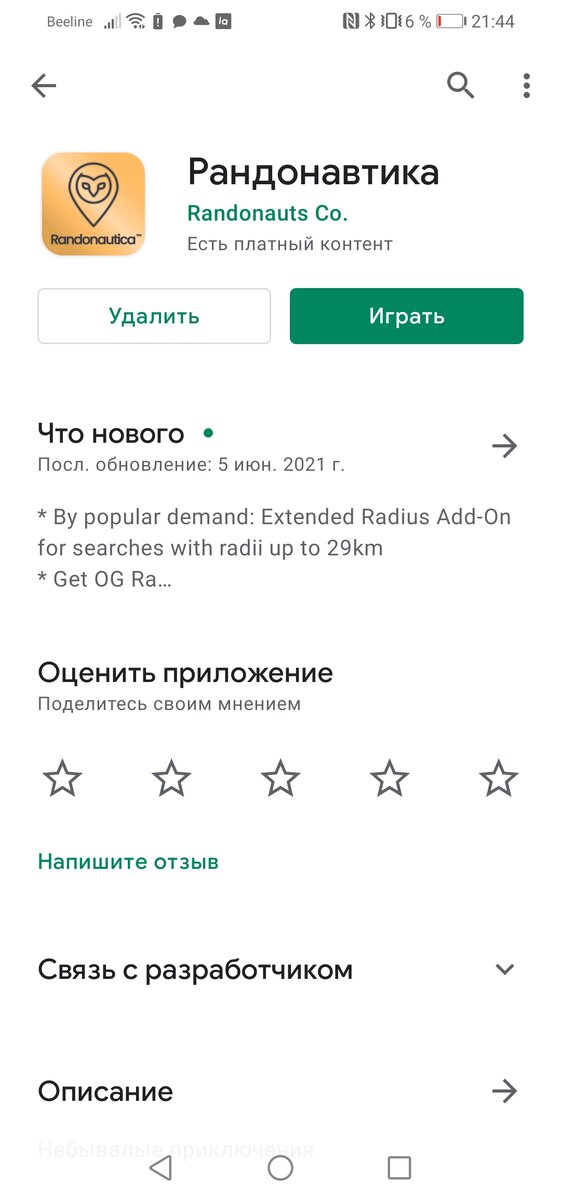 Одно из самого классного что вы можете сделать летом - это погулять по приложению рандонавтинг ,оно есть в App Store и play маркете Пользоваться им вы научитесь буквально на 5 минут Не стоит идти одному на такую прогулку,возьмите одного друга ,а лучше несколько Суть приложения такова: приложение выдает вам рандомную локацию и вы должны дойти до нее Вы выбираете радиус в котором приложение даст вам локацию до 10 км Вы абсолютно не знаете в какое место приведет вас приложение ,в этом и заключается суть приложения интрига!!!! Единственный минус - на андройде приложение на английском языке ,на айфоне не знаю В другой статье расскажу о том как мы погуляли по этому приложению Даю оценку приложению 8 из 10 В play маркете приложение выглядит вот так:
