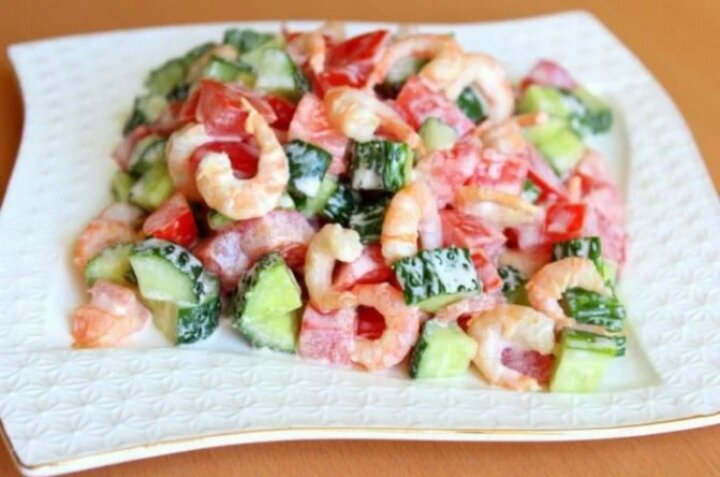 - Заправьте белковый салат с креветками лимонным соком, перцем и солью.
