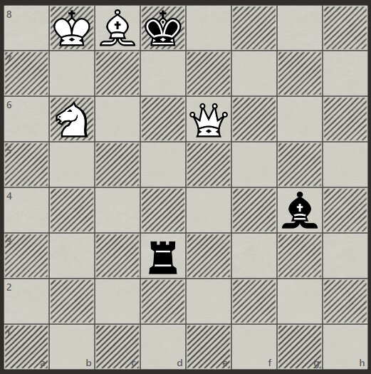 Очередная шахматная задача. Автор задачи Н. ван Дейк, 1964 год. Черные напали слоном на белого ферзя, в случае взятия слона черный король уходит на е7. Однако ход белых, белые ставят мат в 3 хода. Подписывайтесь на канал, будут новые интересные статьи. Первый правильный ход смотрите далее. 1. Белые идут ферзем на f7. И далее ставят мат через пару ходов. Следующая шахматная задача тут>>>>