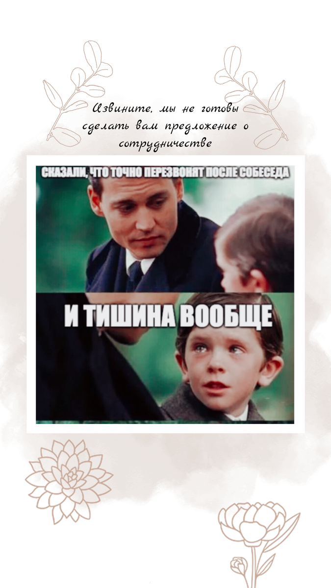 Подумайте над тем, что можно изменить, чтобы в следующий раз пройти собеседование. Может, вы слишком болтливы и говорите невпопад? А может наоборот, очень напряжены и неразговорчивы? Если так, то потренируйтесь с друзьями проходить «собеседование». Или обращайтесь ко мне😇 Потренируемся вместе!