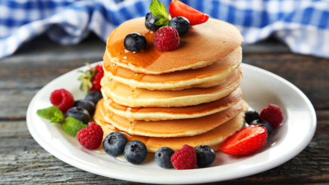 Классические панкейки готовятся на молоке. Тесто нужно обязательно хорошо взбить и насытить воздухом, тогда панкейки будут иметь свой фирменный «бисквитный» мякиш. Стоит позаботиться и о качественной сковороде с антипригарным покрытием, ведь жарить их нужно без масла либо с минимальным его количеством. Именно тогда корочка у классических панкейков получается не хрустящей, а мягкой и бархатной. Ингредиенты Шаг 1 В объемную миску разбиваем яйца, добавляем сахарный песок и соль. Миксером на высокой скорости взбиваем все компоненты до получения пышной пены почти белого цвета. Важно качественно взбить яичную основу, тогда панкейки получатся с «правильной», бисквитно-мягкой сердцевиной и будут равномерно увеличиваться в объеме при жарке. Шаг 2 Молоко слегка подогреть в микроволновке или в ковшике на плите. Струйкой вливаем молоко в яичную пену, следом добавляем растительное масло. Миксером на медленных оборотах смешиваем все в однородную смесь. Шаг 3 Муку просеиваем в миску с жидкой смесью.