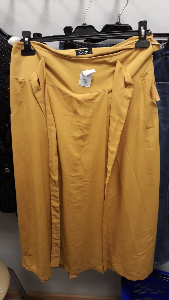 Приветик мои дорогие читатели. Вчера я побывала в секонде в Планета секонд хенд. Люблю этот магазинчик. Очень много стильных шмоток. Еще люблю Мегахенд. Но туда редко хожу. И на это есть 2 причины : взвинтили цены и ехать далеко. Другой секонд в пешей доступности. Вообще я туда оправилась купить дочке летние сарафаны. Цена отличная, почему бы и нет. Зашла до этого в Модис. Знаете, за 800 рублей( цена со скидкой) я брать вещь не желаю. На эти деньги в секонде могу купить 3 вещи и буду довольна как слон ! Пришла ведь за детскими вещами , естественно и про себя не забыла ! Опять набрала кучу на примерку. Но как закон подлости : то что мне дико понравилось , мне не подошло ! Это не юбка, это брюки ! Взяла в качестве эксперимента. Брюки оказались большими именно в поясе. Извеняюсь за качество. Спереди они с запАхом и сзади так же. Цвет темно- желтый. Цвет отличный, легко будет скомпановать с чем угодно. Брючки оказались турецкими. Неудивительно, их стиль тоже восточный. С брючками п