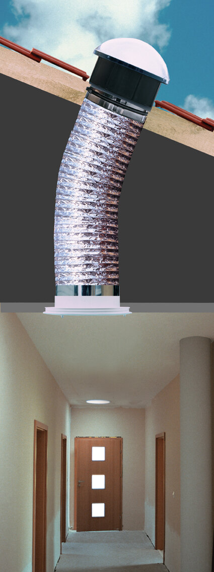 У вас в доме появилась гардеробная. Это круто! Теперь у вещей есть свой дом. Но вот незадача - в гардеробной нет естественного света. Мансардное окно там установить не получится по техническим причинам. Конечно, можно довольствоваться искусственным светом. Но во-первых, дневной свет намного приятнее. А во-вторых, всегда хочется увидеть, как вещь сидит на тебе при дневном свете - так понимаешь ее настоящий цвет. Но что делать? Для таких случаев есть туннели дневного света. Они могут стоять не только в гардеробных, но и в ванных, гардеробные комнаты, кладовых, коридорах, лестничных площадках и даже в подвалах. Из чего состоит такой тунель? Из купола, светоотражающей трубы и рассеивателя для помещения. Солнечный свет, поступающий в трубу, отражается от его стенок, как от зеркала, и поступает в комнату. Диаметр трубы, как и его длина, могут быть разные исходя из требований. А еще труба может быть мягкой и гофрированной, что позволяет ей сгибаться и обойти возможные препятствия, а может быт
