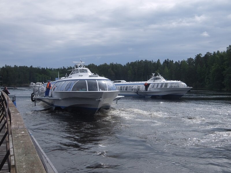 4. "Метеор" идёт минут сорок. Сначала среди ладожских шхер близ Сортавала, потом в открытом озере. Затем показываются берега Валаама. По мере приближения к ним, вокруг становится всё больше разнообразных суден: