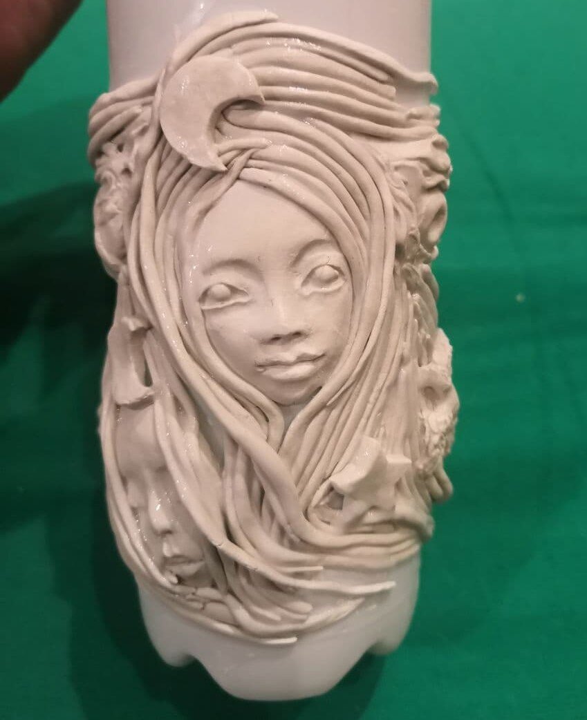 Недавно я решила сделать свечки самостоятельно, но непросто свечки, я хотела сделать форму и украшение свечей по своей задумке. Для того, чтобы отлить свечу, нужно сначала изготовить силиконовую форму. Первое я купила самоотвердевающую глину Fimo air basic и стала лепить узор на пластиковой бутылке. Для прочности прокрыла лепнину клеем пва. Второе купила жидкий силикон на основе олова фирмы Super Form 20 (цифры это жесткость получаемой формы). Этот силикон удобен тем, что активатор из олова подкрашен цветом, его удобно размешивать, т.к. сразу видно, где есть недостаток олова. Сразу скажу, что силикон требует тепла, застывать форму я ставила к батарее в ванную комнату, т.к. на момент изготовления было холодно и при комнатной температуре он не застывает равномерно и до конца. Обычно силикон застывает за 8-10 часов, если он не застыл за это время его можно поставить на батарею или посушить горячим феном, это может помочь. В противном случае все это придется выкинуть, а форму лепить зан