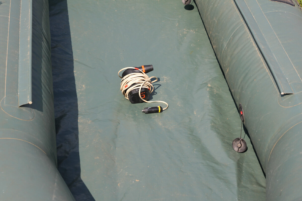 УДЛИНИТЕЛЬ ДЛЯ ЛОДОЧНОГО ЭЛЕКТРОННОГО НАСОСА. Когда я купил новую ПВХ лодку ОНИКС 280, встал вопрос о быстрой накачке баллонов. Естественно был куплен компрессор, работающий от прикуривателя. Их сейчас великое множество продаётся в магазинах и на АЛИ - ЭКСПРЕССе. Выбор на любой вкус и кошелёк. Но вот беда - родной шнур всего 2 метра. Это очень мало. Не всегда есть возможность накачивать лодку рядом с машиной. В итоге пришлось удлинить его ещё на 5 метров. Провода можно купить в любом магазине электротоваров. Делать ни чего сложного нету. Разбираем штекер, который втыкается в прикуриватель, отсоединяем родной провод, вставляем вкладыш -провод, с другой стороны припаиваем к магазинному проводу. Длину провода выбираем исходя из собственных условий. Так же наклеил оранжевую полоску из световозвращающей плёнки. Теперь даже ночью насос хорошо видно, не наступить, не потерять в темноте. ПЛАВАЮЩЕЕ МОТОВИЛЬЦА ДЛЯ ЯКОРНОГО КАНАТА. Очень удобная штука. На мотовило, сделанного из рекламного