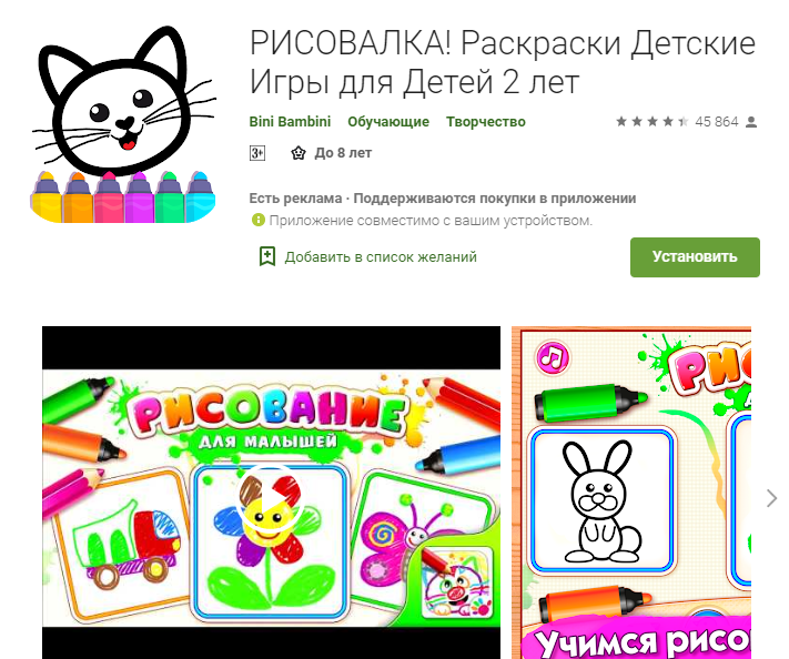Небольшой апплет, после установки занимающий порядка 33 мегабайтов. Подходит для детей возрастом от двух лет. Как и все приложения для самых маленьких, перечисленные в нашей статье, имеет максимально простой интерфейс. Представляет собой интерактивную раскраску: маленькому пользователю нужно заполнить контур изображения, после чего весёлая картинка «оживает» и начинает двигаться: летать, бегать, прыгать, улыбаться .
