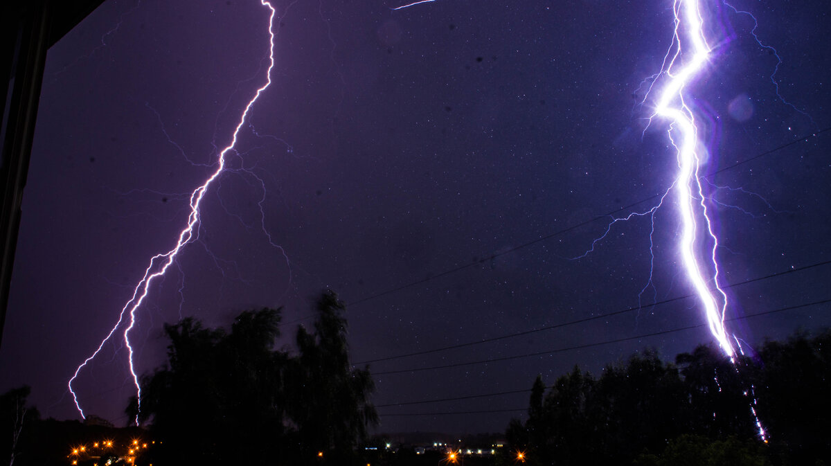Заранее проверил fотоаппарат, штатив - отличный инструмент для охоты на молнию. Раскладываю, подтягиваю крепления... Все готово. Глядя на карту вижу что гроза накрывает Кугеси, приближается. Слышу раскаты грома. Просыпается азарт. Азарт охотника. Время ближе к девяти вечера. Локация - на балконе. Затвор на минимум, выдержка 15 сек. Небо заволокло свинцом. Ветер усилился. Вижу первые