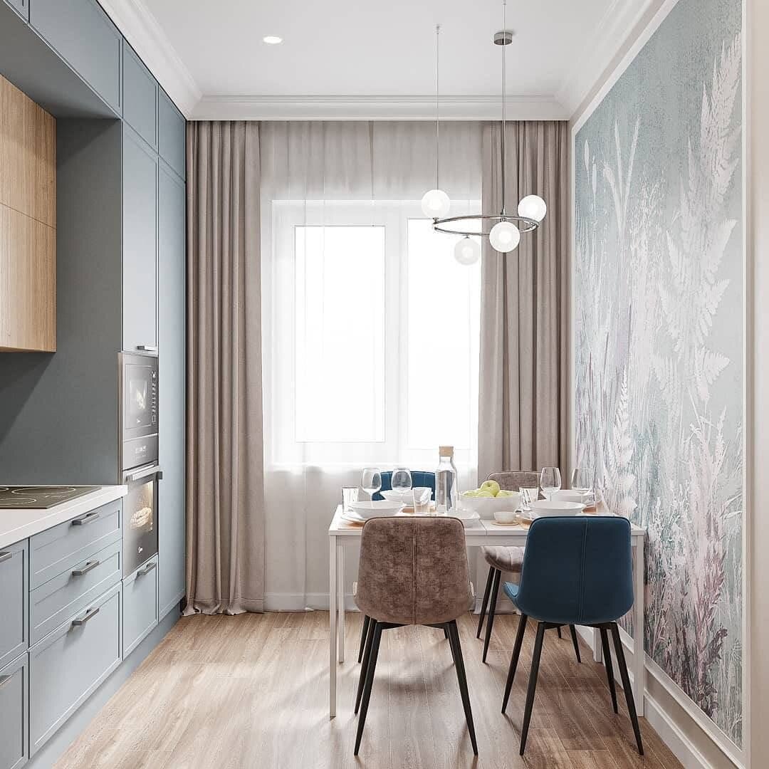 На самом деле абсолютно не сложно изменить дизайн того или иного помещения, но есть одно НО. Нужно знать, чего и как хочешь и не смешивать стили, чтобы все выглядело гармонично. Именно для этого и существует этот канал, чтобы делиться идеями и вдохновением. Эта кухня, всего месяц назад была самой заурядной кухней нашей страны, пока над ней не поработали специалисты. Многие в очертаниях этой кухни просматривают свою. Обратите внимание на цветовое сочетание пола и навесных кухонных шкафов. А как Вам стулья разного цвета? Но о них мы поговорим чуть позже. Итак! Сам кухонный гарнитур выполнен довольно в строгом стиле и холодном цвете. Как и во всех современных кухнях, навесные шкафы установлены под потолок, тем самым добавляя полезного, закрытого пространства, куда можно убрать вещи, которыми редко пользуешься. Необычное сочетание деревянного принта ящиков и мрамора на кухонном фартуке придает особенного шарма этой кухне. Встроенным холодильником и, поднятым на уровень, духовым шкафом со в