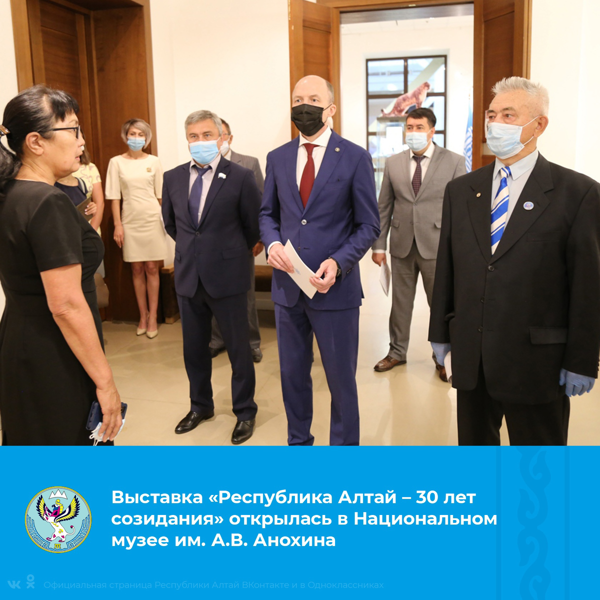 Глава Республики Алтай Олег Хорохордин в пятницу, 2 июля, принял участие в торжественном открытии выставки «Республика Алтай – 30 лет созидания», посвященной 265-летию добровольного вхождения алтайского народа в состав Российского государства и 30-летию со дня образования Республики Алтай. Экспозиция расположена в выставочных залах Национального музея им. А.В. Анохина в Горно-Алтайске. «Наш регион – это самобытный, полноценный субъект Российской Федерации с богатейшей историей, культурой и традициями. На этой выставке все вместе мы сможем еще раз убедиться в этом через исторические и архивные документы, работы художников, мастеров декоративно-прикладного искусства», – сказал на открытии глава региона. Он добавил, что выставка позволит всем желающим познакомиться с историей государственной символики региона, вспомнить руководителей, возглавлявших субъект на протяжении трех десятилетий, узнать о главных достижениях уроженцев Горного Алтая в самых разных отраслях деятельности. О