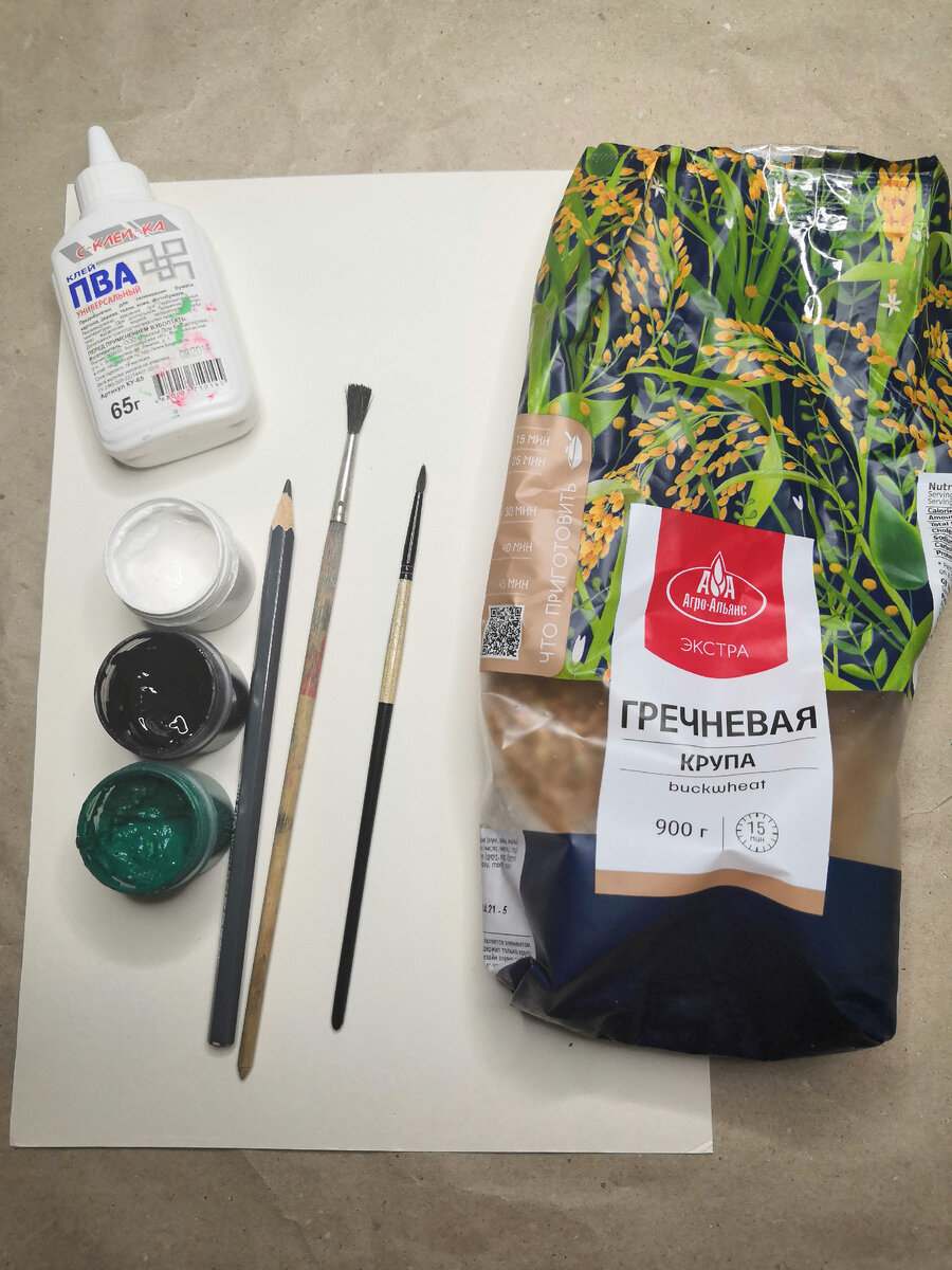 Всем привет. Сегодня сделаем легкую поделку черепашки из гречки. Давайте начнем. Для этого нам понадобится гуашь, у кого нет можно простую акриловую краску, клей П В А, лист бумаги или картон, простой карандаш, кисточка, вода и зерна сухой гречки Берем белый лист бумаги А4 или картон и давайте на нем нарисуем простым карандашом саму черепашку Раскрашиваем гуашью или акриловыми красками в зеленый цвет всю нашу черепашку, глазки обводим белой краской и ждем полное высыхания, у меня примерно ушло на это около 7 минут ( если есть цветная бумага, то этот шаг можете пропустить) после высыхания нашей краски мы наносим и размазываем кисточкой клей П В А по периметру панциря черепашки сверху где у нас нанесен клей мы посыпаем гречкой и ждем когда подсохнет, у меня ушло примерно 2-3 минуты потом стряхиваем оставшиеся зерна гречки и наслаждаемся вот такой нашей поделкой - черепашки) Можете так же посмотреть видео с такой же черепашкой на моем канале