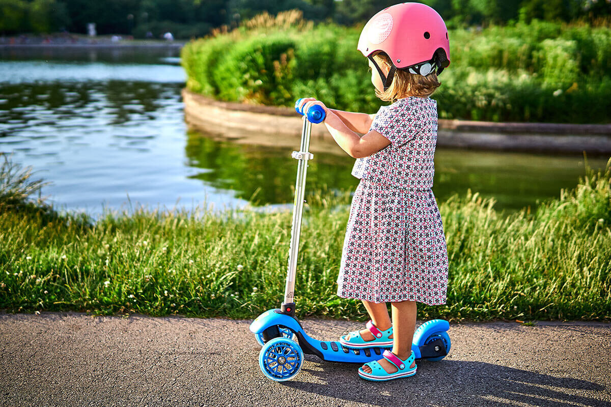 Самокат – доступный тренажер. Езда на нем дает равномерную нагрузку на мышцы ног, спины, учит держать равновесие, стимулирует работу легких. Низкое расположение платформы исключает риск болезненных падений, снижает вероятность получения травмы.