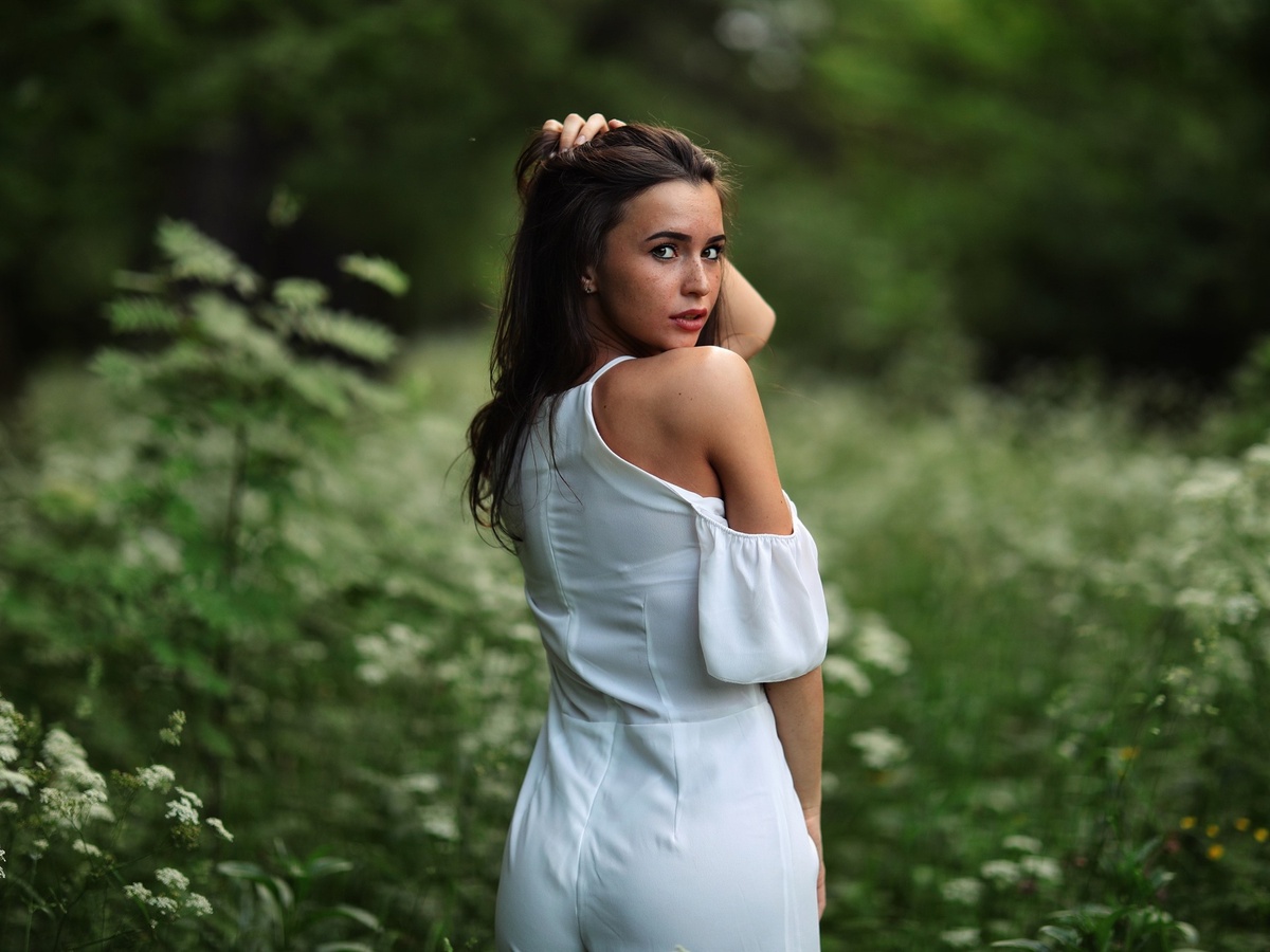 Не новая, классическая, довольно-таки распространённая поза,но, тем не менее, не теряющая своей актуальности и не выглядящая скучно уже на протяжении долгих лет. Для этого нужно лишь слегка повернуть голову и посмотреть в объектив. Совсем не обязательно раскручивать шею на 360 градусов, подражая совам. Достаточно просто легкого поворота головы: это сразу придаст загадочности образу модели и будет выглядеть уместно в контексте любой фотосессии.