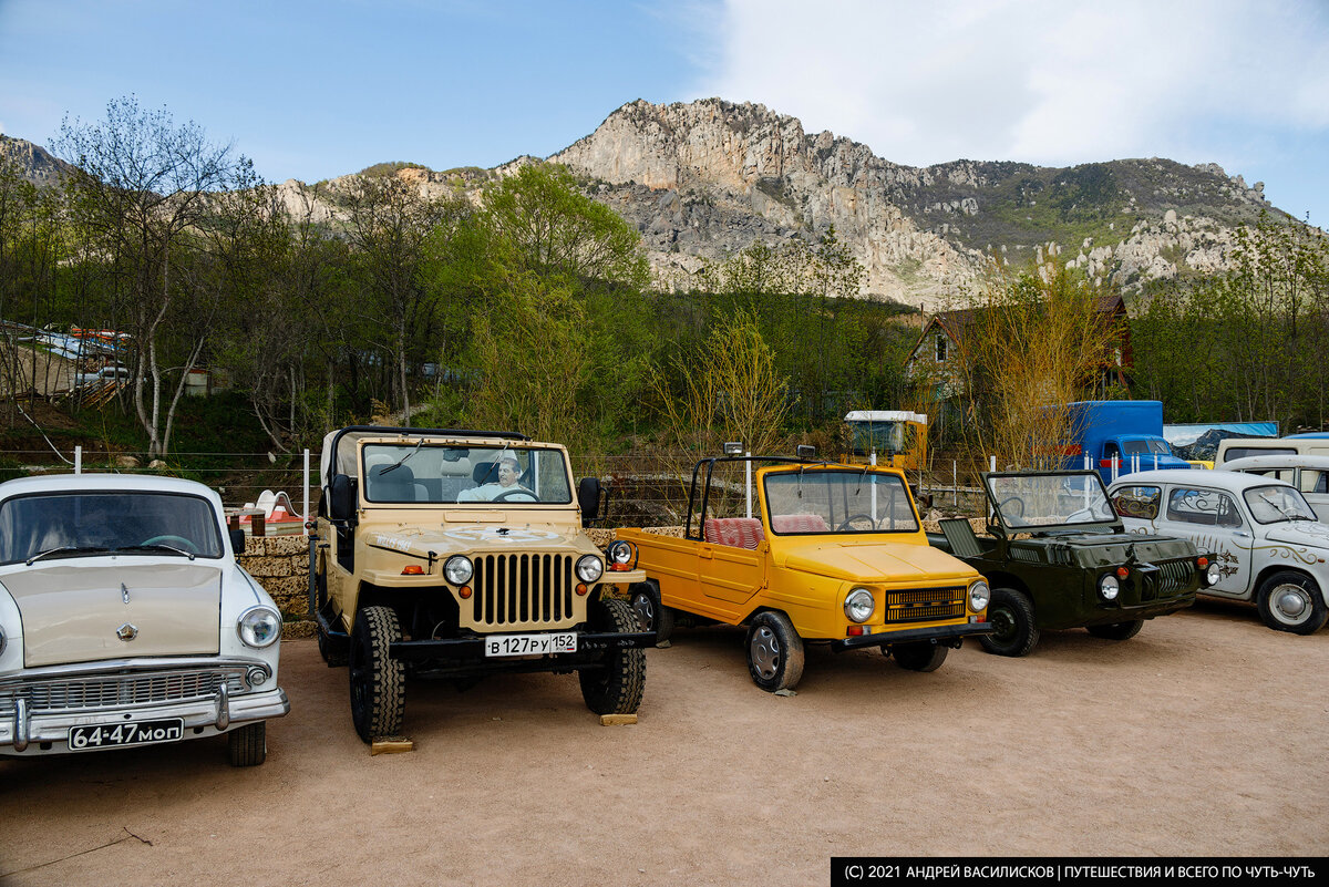 Когда я ехал село Лучистое в сторону горы Демерджи, у подножья которой снималось несколько знаковых сцен фильма, то на одном из поворотов вдруг увидел скопление старой советской техники, мимо которой, само собой пройти не смог.