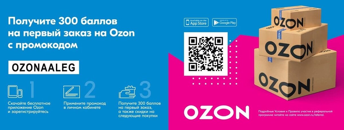 🎁Новым клиентам Ozon дарит 300 баллов по промокоду 🔑 OZONAALEG 📲 Aлгоритм: 1. Cкачайте и зарегистрируйтесь в мобильнoм пpиложении Оzоn (из AppStore, PlayMarket или AppGallery). 2. Примените промокод - 🔑 OZONAALEG в личном кабинете (раздел “Кодовые слова и сертификаты”). ❗️Промокод желательно вводить ДО первого заказа и ДО наполнения корзины и Вы сразу получите 300 баллов, которые Вы должны использовать в течение 5 дней! 🔹Баллы действуют в течении 5 ДНЕЙ ! 🔹Баллы будут начислены сразу после активации промокода и вы сможете оплатить ими до 25% от стоимости заказа. 🔹Акция действует только для НОВЫХ клиентов Ozon при активации промокода 🔑 OZONAALEG в МОБИЛЬНОМ приложении. 🔐А также по промокоду 🔑 OZONAALEG дается доступ к закрытым предложениям и дополнительным скидкам. Предложения с дополнительными скидками постоянно меняются - пишите в личку - отправлю Вам актуальные предложения со скидками! Ознакомиться с условиями акции можно на сайте — https://www.ozon.ru/referral/?code=O