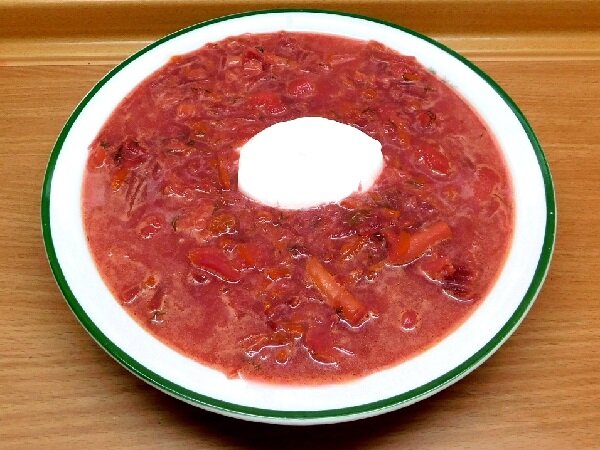 Свекольник горячий – рецепт летнего борща с большим количеством молодой свеклы (до 1 килограмма на рецепт). Свекольники готовят горячие и холодные. Но несмотря на летнюю жару, я больше люблю горячий свекольник с мясом. В нем выдержан баланс сладкого кислого и терпкого вкуса с преобладанием сладкого от молодой столовой свеклы и моркови. Что касается мяса – то подойдет любое мясо на косточке для наваристого бульона. Я взяла крольчатину – это мясо не часто используют в супах, но мне очень нравится бульон на кролике – нежный, мягкий, усиливающий общий сладковатый вкус свекольника, к тому же не жирный и абсолютно диетический. Для 5-литровой кастрюли борща я использую кроличью тушку с остатками мяса на костях – основное мягкое мясо было срезано на котлеты. Однако после приготовления бульона и удаления костей в борще оказалось довольно много мясных кусочков. Ингредиенты: Способ приготовления: Отварите свеклу, пока она не станет полностью мягкой, а после того, как она частично остынет, очистит