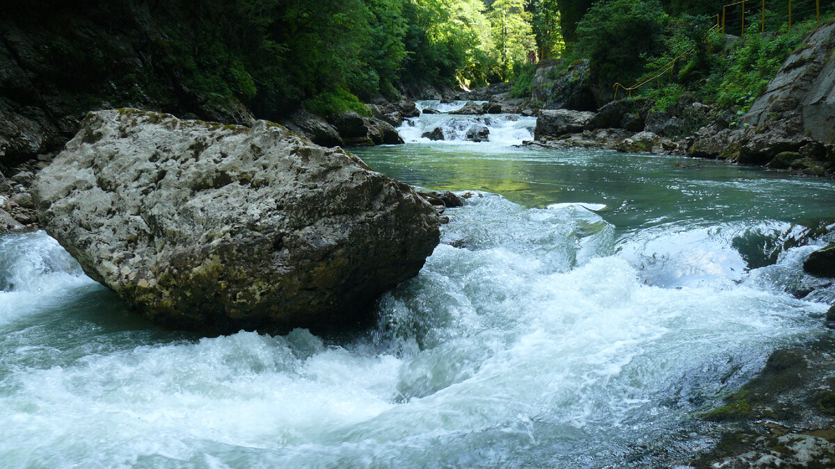Посредине реки лежит огромный валун, откуда он там появился неизвестно