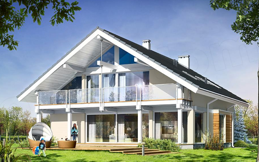 💥 Фешенебельный дом на 5 комнат, размером 6х9 м, площадью 317 кв.м., один этаж + мансарда. Стоимость проекта — от 11 миллионов рублей. 💒 Этот стильный красавец-особняк подойдет тем, кто любит обилие света. Отделка дома выполнена в светлых тонах с декором из облицовочного кирпича, большая открытая веранда на первом этаже и просторная терраса на втором — делают дом стильным и комфортным для проживания. 🌞 Панорамные окна и «второй свет» в мансарде дарят прекрасный обзор окружающего ландшафта, наполняют комнаты солнцем и воздухом, зрительно расширяют внутреннее пространство, стирая грань между улицей и домом. 👪 В проекте предусмотрена спальня на первом этаже, это позволяет сделать виллу безопасной для маленьких детей и пожилых людей. Особенности дома ⚡ В доме Алеха запроектировано 5 спален и гостиная. При желании назначение любой комнаты можно изменить. ⚡ В особняке предусмотрено 3 санузла — это обеспечит комфортное проживание семьи из трех-пяти человек. Если проживающих меньше, планир