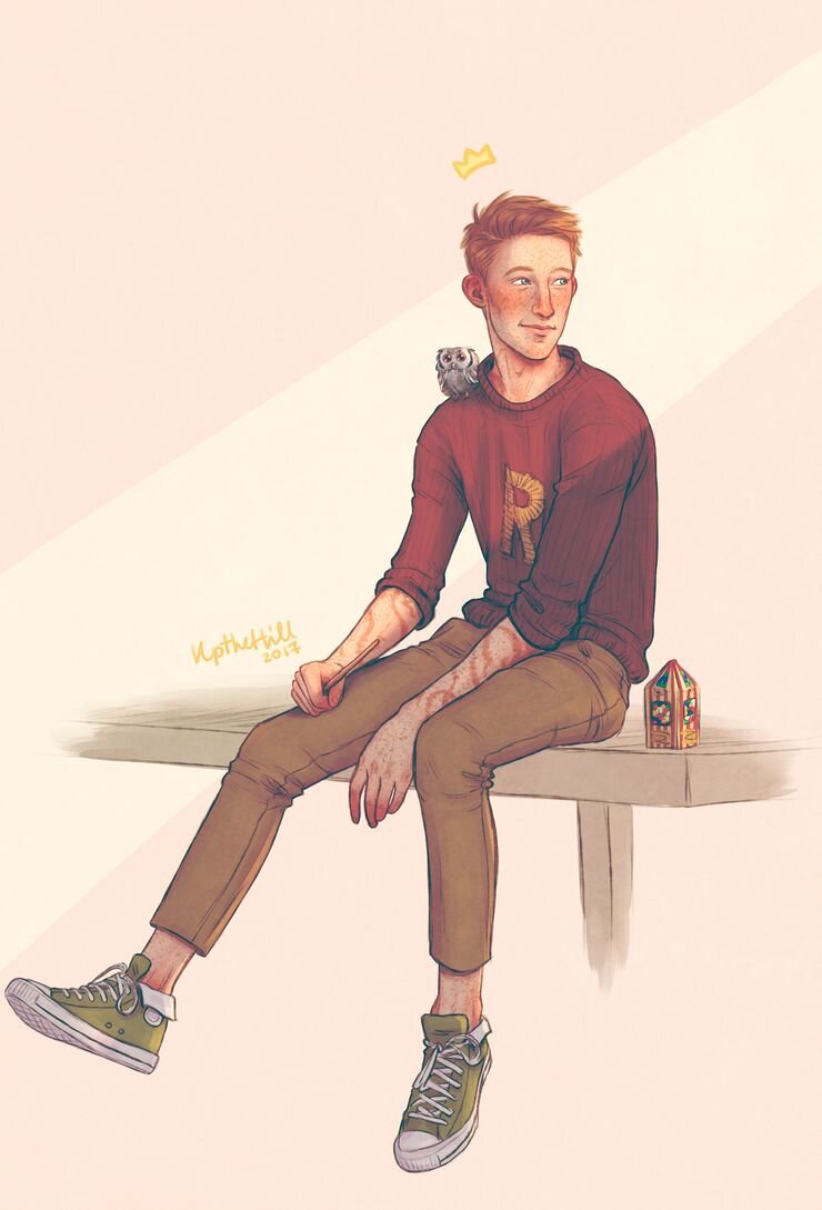 Пусть серия о Гарри Поттере, очевидно, не называется «Рон Уизли и Философский камень», без помощи рыжеволосого друга Гарри бы точно не справился. В конце концов, кто ещё мог выиграть у профессора МакГонагалл в волшебные шахматы? Личность Рона временами подвергается критике со стороны фанатов, но никто не идеален, а его характер развивался и рос на протяжении серии. Художники запечатлели множество лиц Рона Уизли, от мальчика, напуганного пауками, до воина, ставшего аврором. Рон и Сычик (автор Upthehillart) Этот арт представляет Рона, мирно сидящего в лучах солнца. У него на плече сова Сычик, а рядом лежит коробка «Берти Боттс» со всевозможными вкусами. Сам Рон укутал в вязаный Джемпер от Уизли, закатанные рукава которые открывают одну интересную деталь. Если помните «Орден Феникса», то на Рона напал странный мозг с щупальцами, которые обвились вокруг его кистей. Золотое трио (автор blvnk-art) Гарри, Гермиона и Рон. Они прекрасно дополняют друг друга и привносят в команду различные сильн