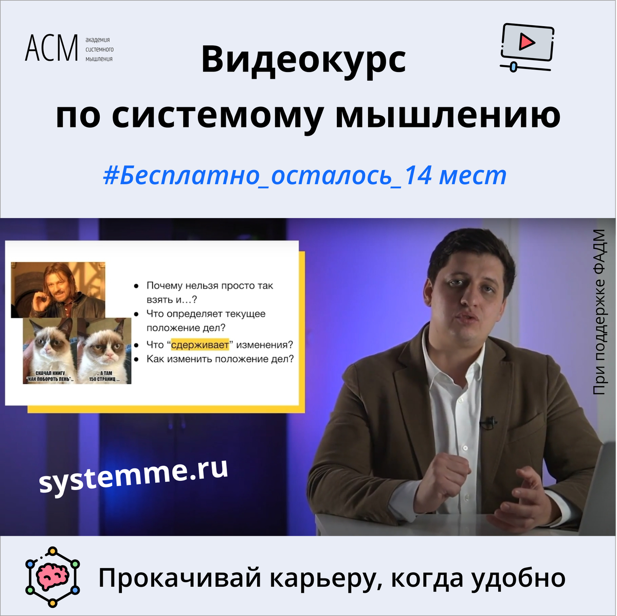 Онлайн-курс по системному мышлению, разработанный совместно с Академией Системного Мышления при поддержке Росмолодежи для развития soft-skills.