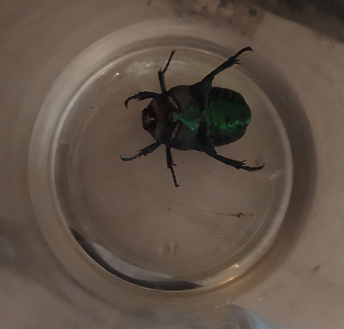 Такого здоровенного жука обнаружил сегодня на шторе. Он был пойман стаканом и выдворен на улицу.