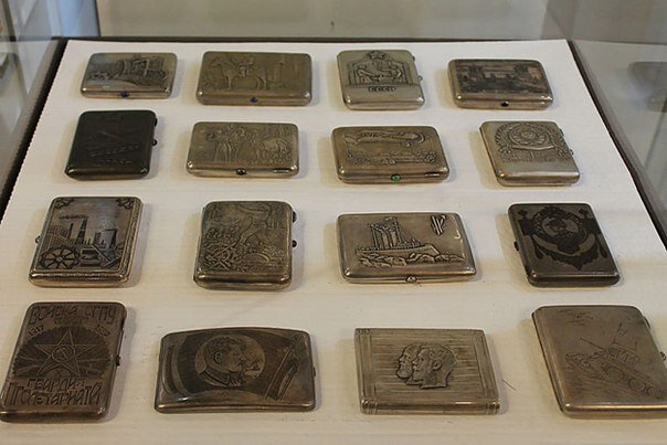 Были модели, посвященные смерти Ленина. Ближе к 1930-м годам портсигар приобрел особый статус, его вновь стали использовать в качестве наград. Такие подарки дарили чекистам, военным, чиновникам, иногда отличившимся рабочим и колхозникам. При этом вместе с подарком человек получал и документ о его вручении.