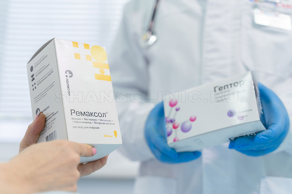 Ремаксол (лат. Remaxol) — инфузионный гепатопротектор, представляющий собой комплекс физиологически активных компонентов — янтарной кислоты, метионина, инозина и никотинамида. Применяется у больных с нарушениями функций печени вследствие её острого или хронического повреждения (токсические, алкогольные, лекарственные гепатиты); в комплексном лечении вирусных гепатитов (дополнительно к этиотропной терапии). Применение Может быть показан к применению при диффузных поражениях печени различной этиологии: алкогольная болезнь печени, неалкогольная жировая болезнь печени, токсические поражения печени (последствия химиотерапии, воздействия токсинов и ядов), а также в комплексной терапии вирусных гепатитов (как дополнение этиотропной терапии и для купирования нежелательных явлений основной линии). В наркологии - при лечении от отравлений различными веществами и гепатотропными ядами, в т.ч. снижаем вероятность развития алкогольного делирия. В психиатрии может применяться при алкогольном абстинен