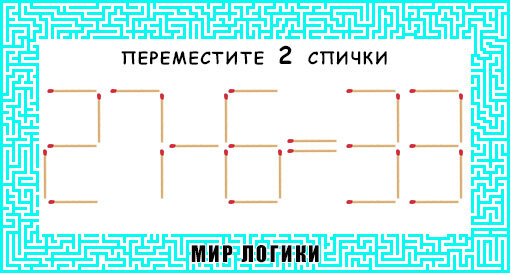 (ответами делитесь в комментариях) Сделайте уравнение верным, переместив 2 спички Сделайте уравнение верным, удалив 2 спички Сделайте уравнение верным, переместив 2 спички Решили? Тогда ставьте лайк, подписывайтесь на наш канал и, конечно же, делитесь с друзьями! Всем отличного дня!