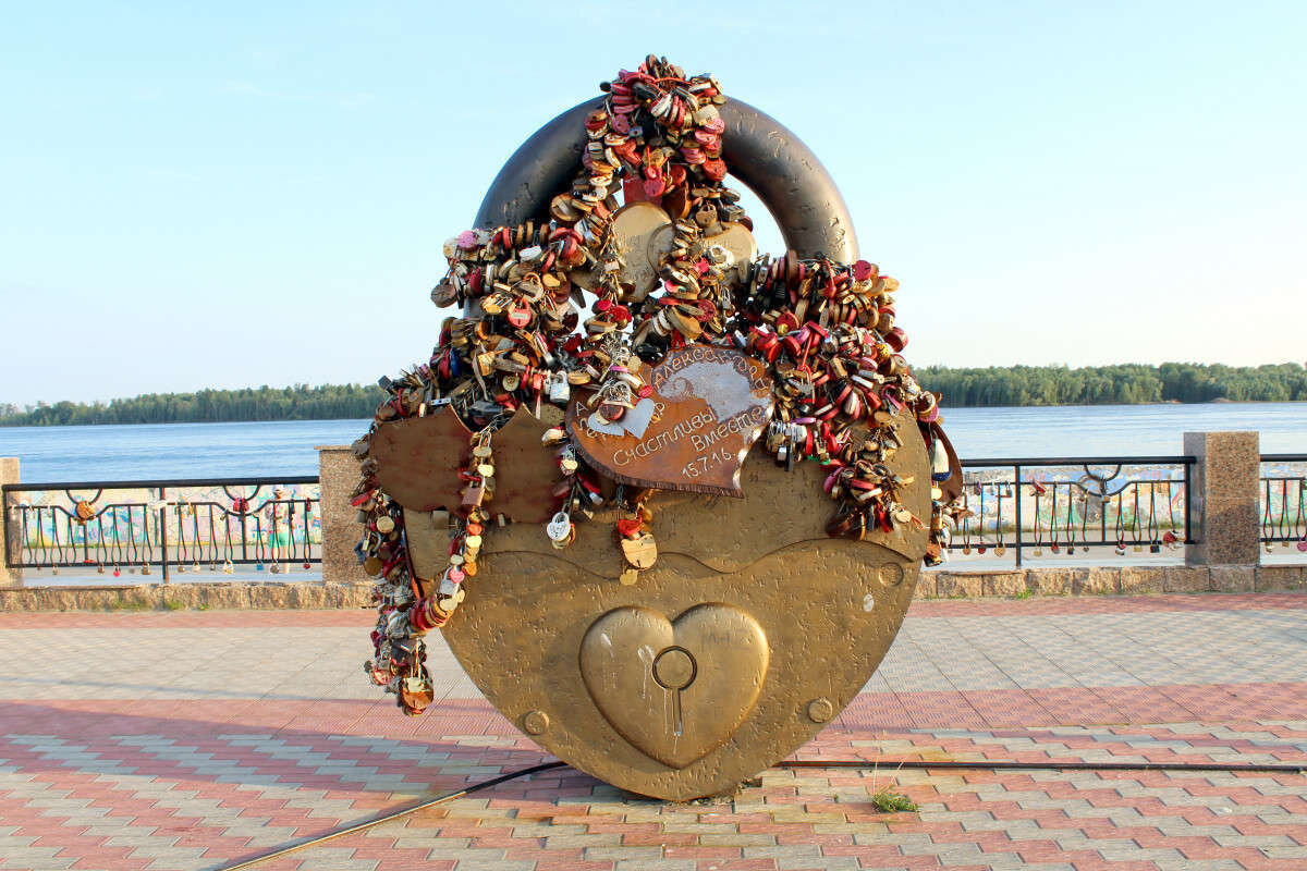 Интересной будет и композиция «Замок». Именно здесь в день бракосочетания молодожены вешают на огромный замок маленькие замочки как символ любви, верности и семейного долголетия. Скульптурная композиция окружена 5 чугунными деревьями. Она появилась на набережной в ноябре 2010 года как подарок городу от муниципального предприятия.