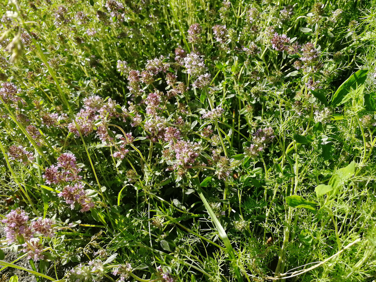 Вот мы говорим - тимьян, а это ж известный всем чабрец. Растет обычно в полях и никакого ухода не требует. Собирай его, сколько влезет. суши, в чай клади, будет ароматный, успокаивающий напиток. Но мы легких путей не ищем, все интересное и полезное тащим на свой садовый участок. Вот и теперь - в марте посадили, пленкой прикрыли, немного поливали. Это все было в прошлом году. На второй год начинается цветение. И аромат этот очень успокаивает, умиротворяет, особенно, пока сидишь рядом, собираешь жимолость с куста. Скоро сможем заваривать эту травку. Или класть в мясные блюда. тоже иногда бывает кстати. А вы как тимьян используете?