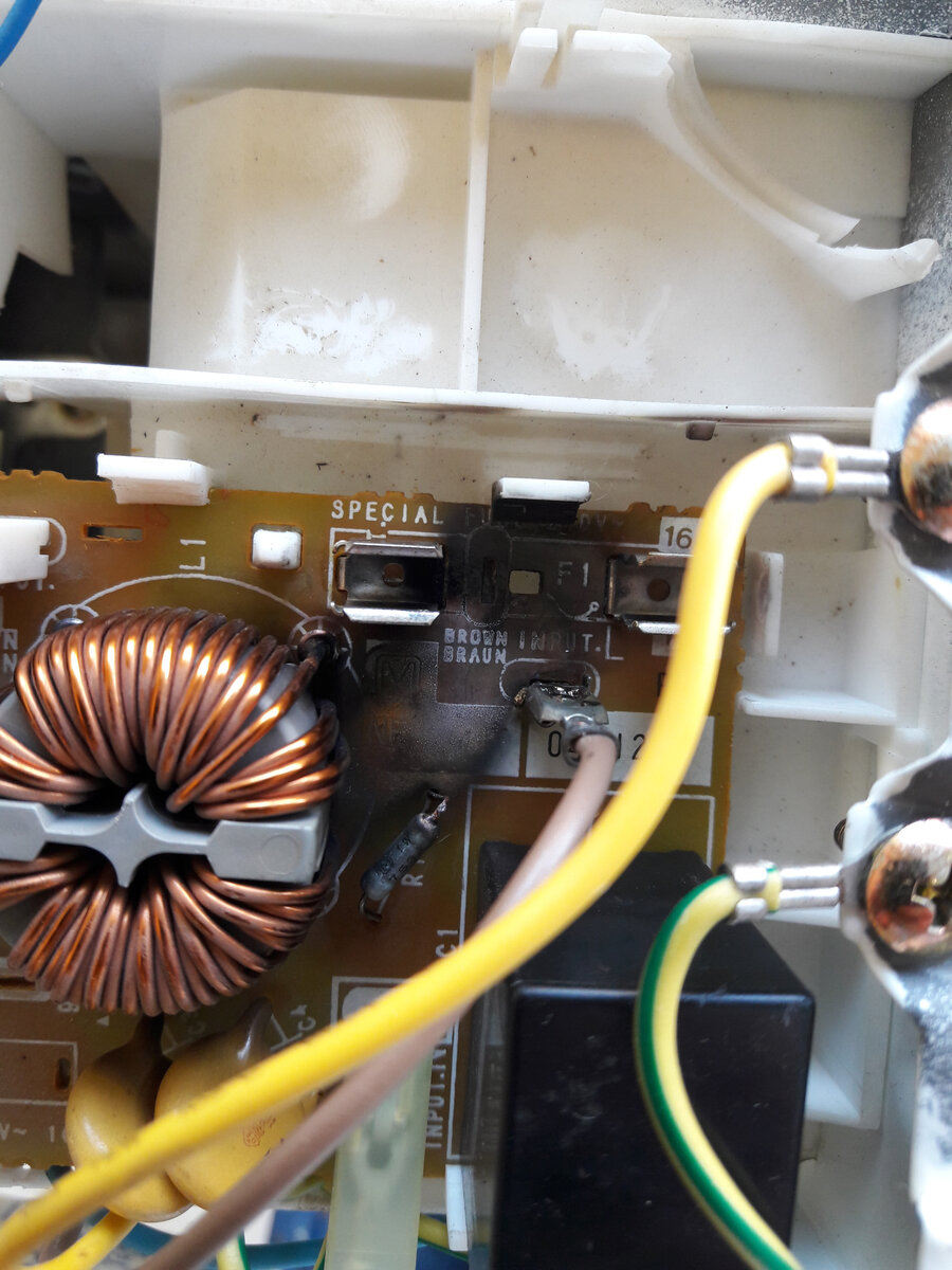 Всем здравствуйте! Сегодня у нас на ремонте инверторная микроволновка Panasonic NN-K543WF с заявленным дефектом не включается, горят предохранители. Все фотки самой печки я делать не стал , разбирается в принципе как обычно , крути винты и снимай крышку :) Сегодня мы заострим внимание на самом дефекте. Перегорание сетевых предохранителей в обычных , трансформаторных, микроволновках зачастую связано с неисправностью концевиков или проблемами в блоках питания, но это в зависимости от схемы микроволновки. С инверторными-же, на моей практике, я пока не сталкивался с неисправными концевиками и питателями. В основном мне приходили с проблемами с магнетроном и более частые с инвертором. О котором я сегодня расскажу и покажу. Открываем и видим следующее. На входной плате питания и фильтров был взрывчик и видимо не раз :) Жгли предохранители не стесняясь. Хорошо хоть гвоздь не запихнули, хотя бывало и такое :) Как я начал искать дефект. В место предохранителя подключил лампочку 220 воль