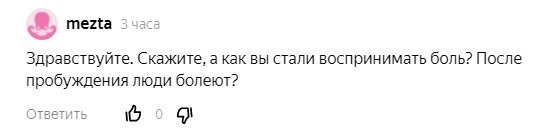 А боль никуда не уходит, остаются ощущения, переживания, эмоции... Можно даже сказать, что переживание боли усиливается, так как повышается чувствительность. И боль ощущается ярче и глубже. Но! Раньше, когда ты испытывал боль, ты страдал, мучился, переживал. Пытался от неё уйти — съесть таблетку, перевязать ранку на душе... После пробуждения ты осознаёшь, что боль — это как реакция нашего физического тела. Что если стукнуть палкой по руке, то будет больно. И, конечно, ты проявляешь соответствующие реакции. Но ты не страдаешь. Уходит герой, который начинает страдать, мучиться от этой боли.