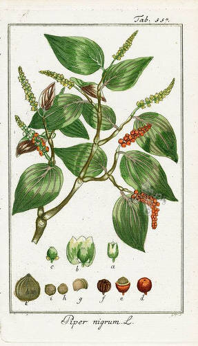 Перец черный имеет острый вкус и острое послевкусие, согревает организм. Воздействует на пищеварительную, кровеносную, дыхательную системы. Питает плазму, кровь, жир, костный мозг, нервную систему. Терапевтическое действие общеукрепляющее, отхаркивающее, ветрогонное, глистогонное.