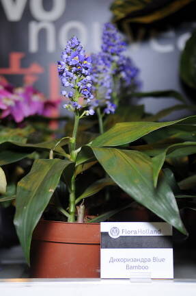 Своими листьями и членистыми стеблями дихоризандра очень напоминает имбирь, за что и получила обиходное название – Синий имбирь. Это не только декоративнолиственное, но и красивоцветущее растение. Образует кисти синих цветков, которые долгое время держатся на растении. У некоторых видов листья при хорошем освещении имеют эффектные серебристые полоски, усиливающие их привлекательность.