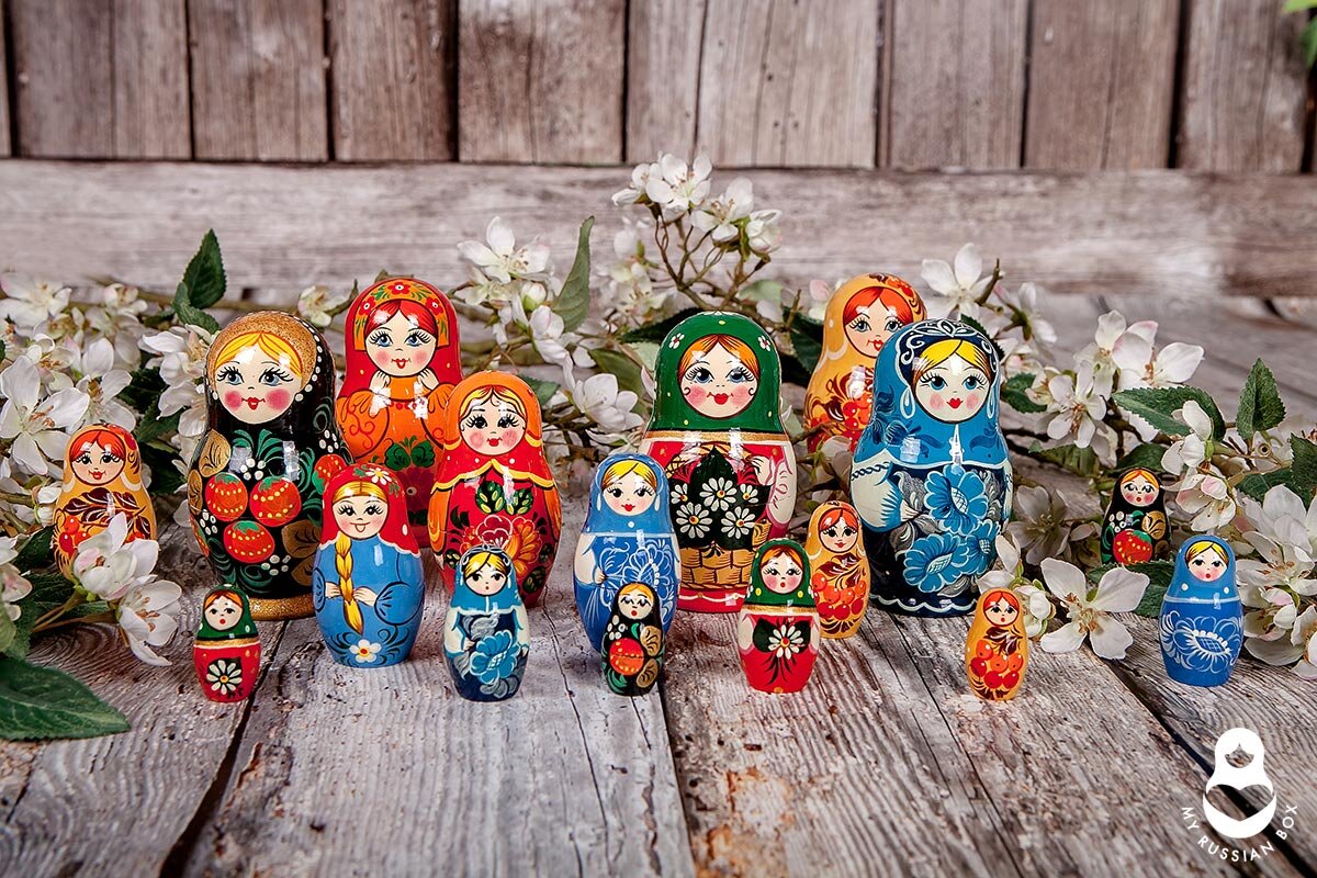 В течение пяти лет мы отправляем коробки с русской душой по всему миру и составили свой рейтинг матрешек, которые особенно нравятся нашим иностранным клиентам. В нашем ассортименте классические матрешки с ручной росписью. Мы выбрали их по своему вкусу из огромного ассортимента матрешек в России, исключив штампованные и шуточные изделия. 1. Матрешка, которая принесла нам первую известность среди иностранных подписчиков. Матрешка в кокошнике, расписана в сине-голубых тонах, благодаря чему ассоциируется с росписью гжель. На самом деле это авторский рисунок. По сей день эту красавицу выбирают чаще всего наши клиенты. 2. Матрешка с инкрустацией соломкой. Поистине уникальное изделие, так как данное мастерство считается редким и эксклюзивным. Матрешка богато украшена цветочными узорами. 3. Матрешка «Ромашки» очаровывает своей миловидностью. Ее открытый взгляд, длинная коса, венок на волосах и ромашки символизируют традиционный образ русской красавицы. 4. Матрешка под хохлому завоевала сердца