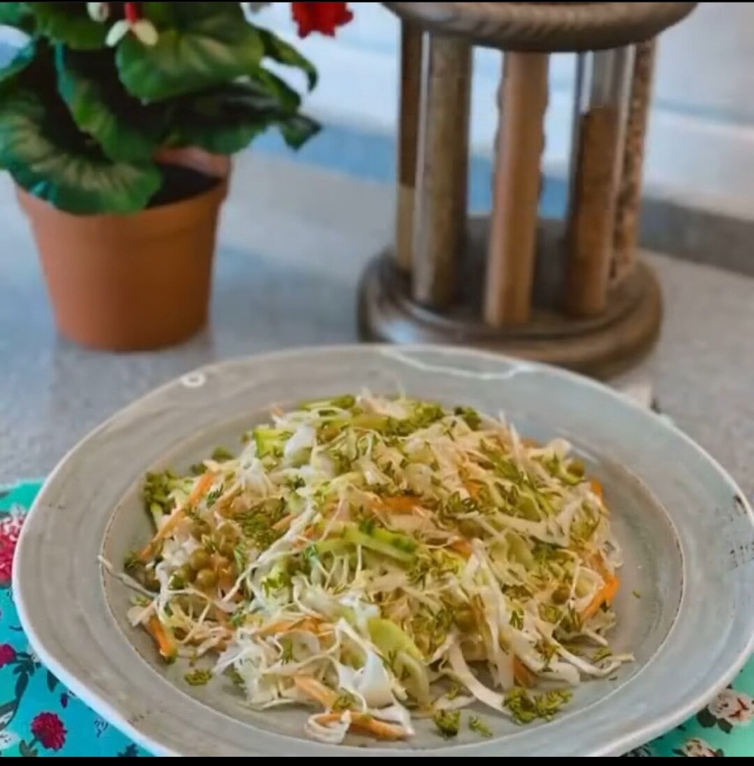 Всем привет!!! Приветствую вас на моем канале. Сейчас сезон свежих овощей, которые доступны каждому. Я вам предлагаю приготовить очень простой рецепт из свежей капусты. Салат из свежей капусты - прекрасный вариант для легкого перекуса или дополнению к основному блюду. Готовится быстро и просто, получается постным и диетическим. Время приготовления 10-15 минут. Ингредиенты: Заправка: Приготовление: 1. Овощи нашинковать тонкой соломкой и перемешать. 2. Все составляющие для соуса смешать в мисочке и добавить к нашим овощам. 3. В салат добавляем зеленый горошек и ещё раз перемешиваем. Все наш салат готов. Можно подавать к столу. Приятного аппетита!!! P.S. Все рецепты приготовлены мной и опробованы моей семьёй.