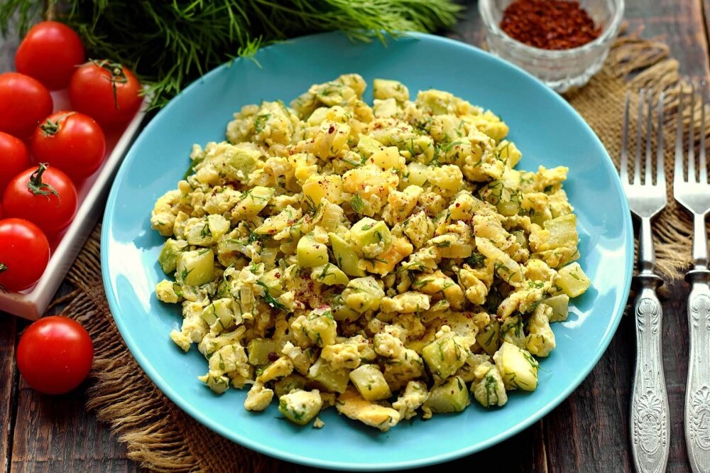 Жареные яйца — блюдо, которое можно дополнять самыми разные ингредиентами, каждый раз меняя привычный вкус. Готовим простое диетического блюдо для сытного завтрака — яйца с кабачками. К кабачкам обязательно нужно добавить лук, он сделает их сочней и ароматней. В жареные кабачки вбиваются яйца, которые можно, как взболтать, так и оставить в целом виде, в обеих вариантах получается вкусно. Здесь можно добавить любые специи по вкусу, чеснок и зелень. Блюдо готовится очень быстро и просто, особенно вкусно получается из молоденьких хрустящих и сочных кабачков.