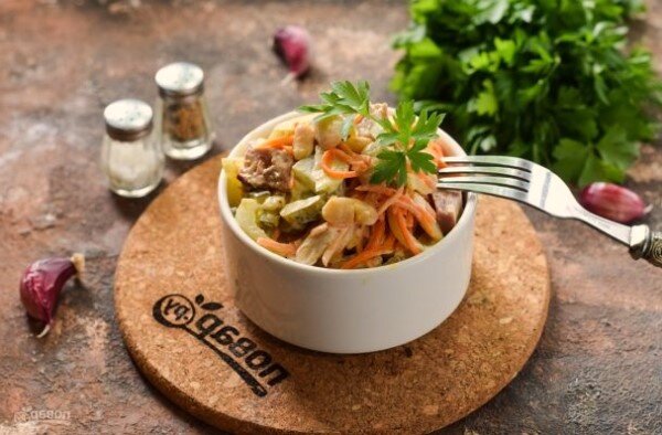 Предлагаю вашему вниманию легкий, очень вкусный и не дорогой салат с фасолью из Германии, с солеными огурчиками, нежной ветчиной, морковкой по корейски и луком. Красочный салатик будет достойным украшением любого праздничного стола. Ингредиенты: Готовим вкуснейший салат с фасолью из Германии: Приготовьте все необходимые продукты Болгарский перчик нужно очистить нарезать полосками и посолить Если морковка по корейски очень длинная, ее нужно нарезать более коротко! Далее складываем перец, морковь в одну посуду, у меня это просто тарелка и туда же добавляем фасоль Далее необходимо нарезать ветчину, сделать это можно как вам будет удобнее или полосами или же кубиками, добавляем ее в салат Далее чистим лук и режем его полукольцами или же четвертькольцами это тоже сугубо на ваш выбор! Добавляем в салат Соленые огурчики лучше всего нарезать не большими кубиками после так же добавляем в емкость с салатом Все почти готово, теперь добавляем в салат майонез и по вкусу можно слегка по