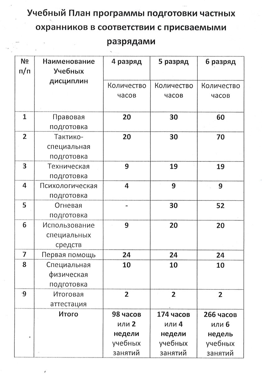 Для тех, кто решил освоить данную профессию я набросал некий план-ориентир как же получить заветную «ксиву». Для начала нужно пройти обучение по программе профессиональной подготовки охранников . В каждом городе полно учебных центров предоставляющих такие услуги. Цены у них в основном на одном уровне, можно выбирать любой поближе к дому. Но, конкуренцию никто не отменял и иногда проводятся акции по снижению цены обучения, так что нужно не поленится и обзвонить всех. Программы обучения у всех одинаковые. Существует три категории охранников : 4 разряд - несение службы без оружия но со спец.средствами (палка резиновая, наручники), 5 разряд - сотрудник охраны помимо спец.средств при несении службы вправе применить оружие самообороны( огнестрельное оружие, не имеющее ствол), газовые пистолеты и револьверы 6 разряд - к разрешенному в четвертом и пятом разряде к применению перечню оружия добавляется служебное огнестрельное оружие (это пистолеты, револьверы ружья и карабины гладкоствольные дл