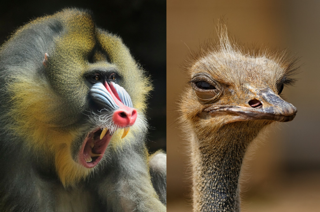 Безумная встреча страуса и мандрилы. Кто же победит в этой схватке?