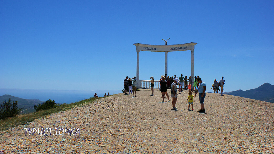 На вершину горы Коклюк от трассы Алушта – Судак – Феодосия ведёт отличная асфальтированная дорога. Теперь там можно хоть на Матизе, да хоть на самокате ехать. Я уже рассказывала про эту прекрасную смотровую площадку с колоннадой наверху. Три года назад мы там были. Тогда не нашли сначала автомобильную дорогу и поднялись по крутому склону пешком. А наверху обнаружилось, что там стоят машины. Они приехали туда по довольно плохой грунтовке, с ямами и промоинами. Не каждая машина могла подняться. В этом году снова поехали на «Звездопад Воспоминаний» – и не узнали местности. Гора Коклюк, на которой стоит беседка «Звездопад Воспоминаний» – часть Феодосийского мелкогорья. Она является завершением небольшого горного массива Узун-Сырт, известного как гора Клементьева. Из-за особенности воздушных потоков гора Климентьева идеально подходит для планерного спорта. Здесь регулярно летают планеристы, тренируются и проводят соревнования. Также тут находится центр планерного спорта «Коктебель» и музей