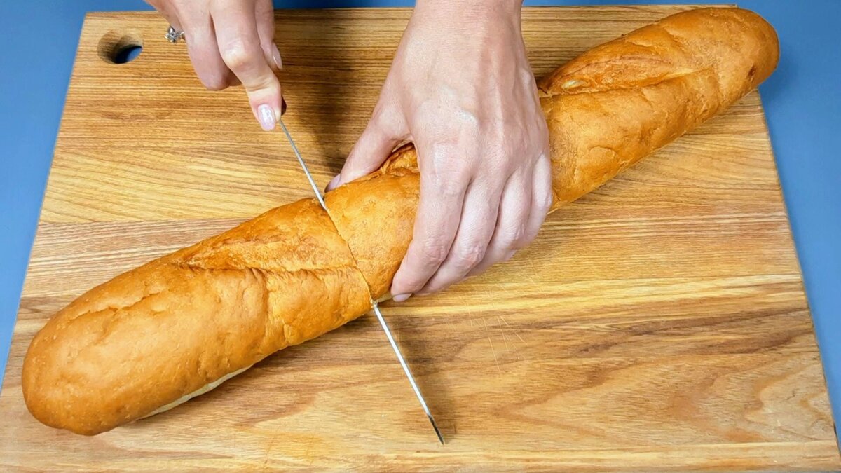 Когда нет времени, а хочется перекусить, то готовлю из простого багета вкусное блюдо за 20 минут