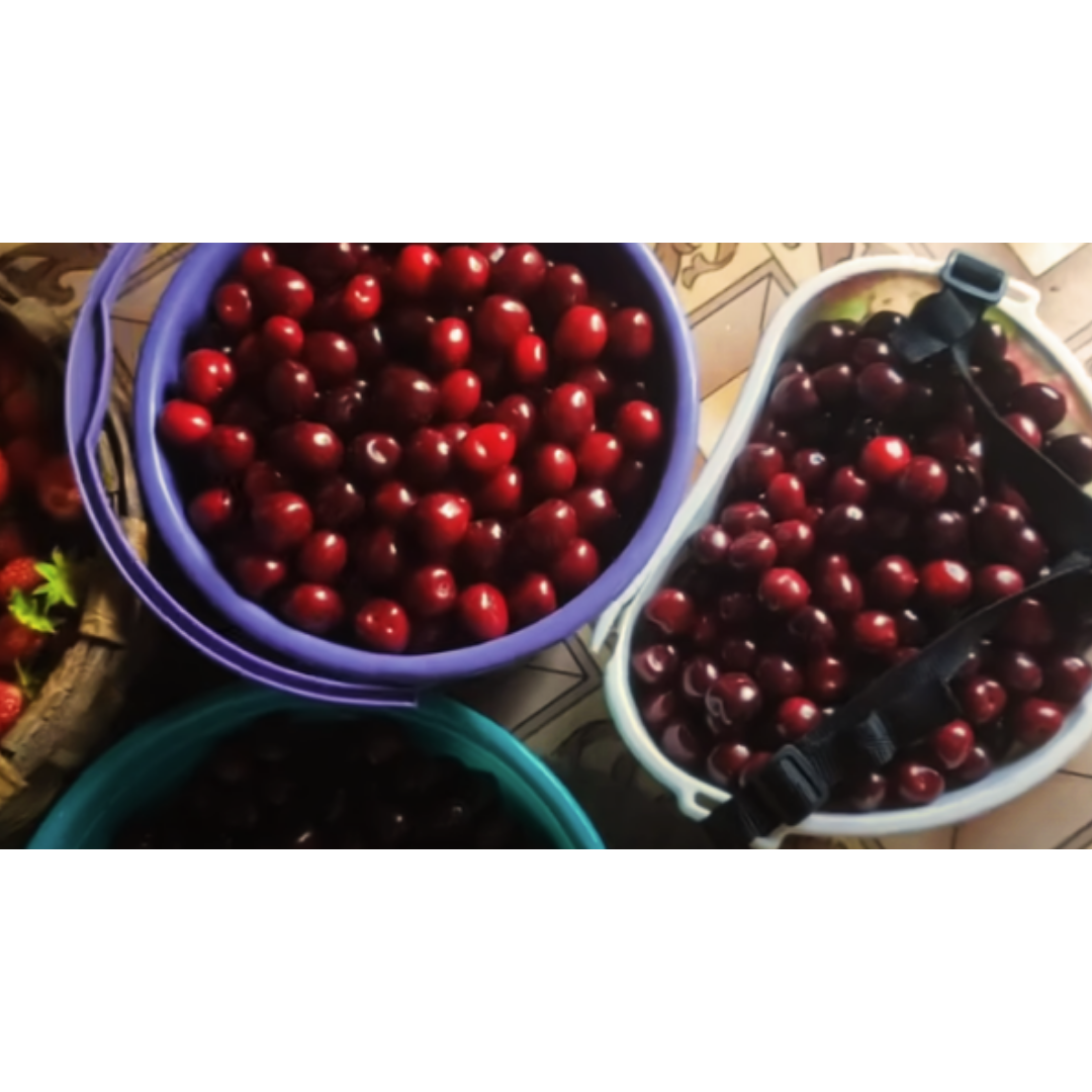 В детстве все праздники были связаны с поеданием определённого вида фруктов. На новый год мы с упоением нюхали запах мандарина и вгрызались в красный бок венгерского яблока. Летом лакомились искусственно и насильственно поспевшим за 4 часа бананом. Я его мяла, по столу стучала, под лампой грела. Есть становилось можно, но как-то не вкусно. Весной, глядя на дорогую черешню, хотелось съесть целый таз. Таз черешни в моей жизни все же был, когда мы в школе поехали в трудовой лагерь в Феодосию. Пока мы добирались до места, этот таз с черешней сводил с ума наше воображение. Как оказалось, прибыли мы для работы на виноградниках... полоть короче Из опыта садовода- огородника заявляю, труднее работы я не знаю. После того, как мы уже почти готовы были вымереть всем отрядом на комьях и глыбах сухой земли, в 40 градусную жару, нас на 3 дня отправили на сбор черешни. Честно предупредили, что если намерены съесть много черешни, то заранее распределяйте кусты между собой, а-то будет "Занято". Мы дум