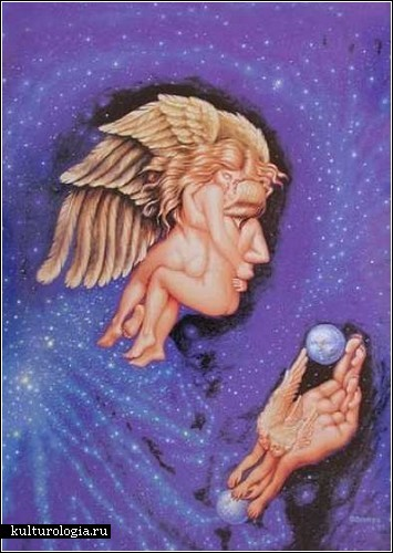 Картины мексиканского художника-сюрреалиста — Октавио Окампо (Octavio Ocampo) наполнены оптическими иллюзиями и скрытым смыслом. Некоторые психологи даже используют его картины, для психологических тестов и определения типа личности человека. В картинах скомбинированы разные предметы, животные, люди, растения. Художник причудливо изгибает их формы, придавая изображению многослойность и двойной смысл. При первом взгляде на картину вы можете увидеть человека, при более детальном рассмотрении уже проявится дом, а если рассматривать изображения пару минут, то появятся все новые существа или предметы. Предлагаю вам пройти тест от канала Успех во всем и определить ваш тип личности по картинками. Смотрите на картинку и отметьте про себя, какое изображение первым бросилось вам в глаза, какое вторым и так далее. Ответы будут под каждой картинкой. Помните, смотреть надо ответ на тот предмет, который первый бросился вам в глаза. Рисунок 1 Профиль и рука человека: вы открытый и прямолинейный челов