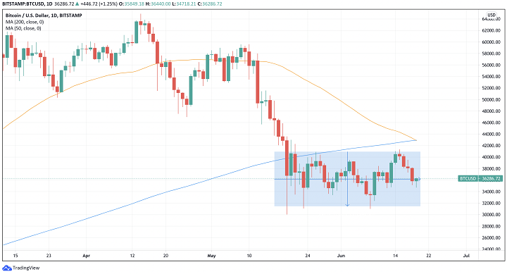 BTC торговался в аналогичном диапазоне уже четвертую неделю подряд, так как опасения инвесторов возросли. BTC вырос до обнадеживающего уровня в 41 000 долларов, а затем упал до 35 000 долларов в течение двух дней. 200-дневная MA сопротивлялась попыткам BTC вырваться за пределы 41 000 долларов. Между тем, фактором, вселяющим страх в сердца инвесторов, является "Крест смерти", момент, когда 50-дневная MA пересекает 200-дневную MA в нисходящем направлении. Как вы можете видеть на изображении выше, 50 МА близки к пересечению 200 МА. Однако, поскольку инвесторы продавали свои BTC в убыток, долгосрочные инвесторы оставались невозмутимыми, продолжая накапл