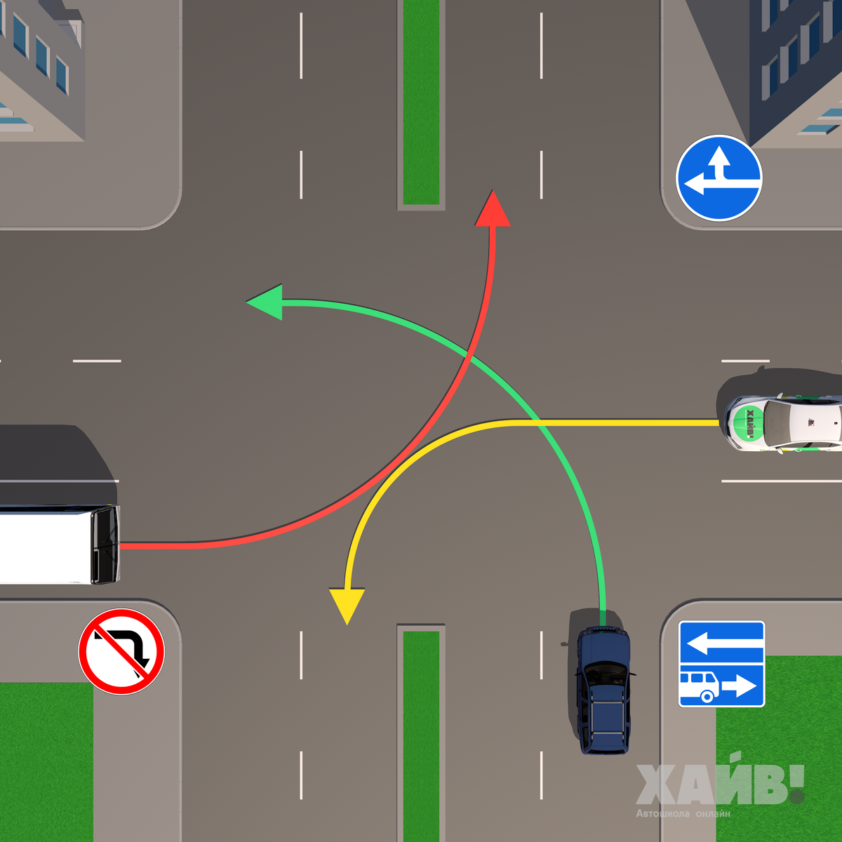Кто из водителей выбрал запрещенную по ПДД траекторию?