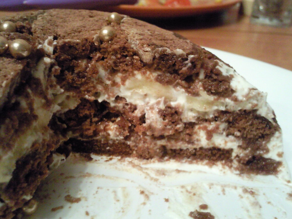 Подруга научила меня готовить просто невероятный "Шоколадный торт с бананами". Без выпечки, за 10 минут и из 4 составляющих