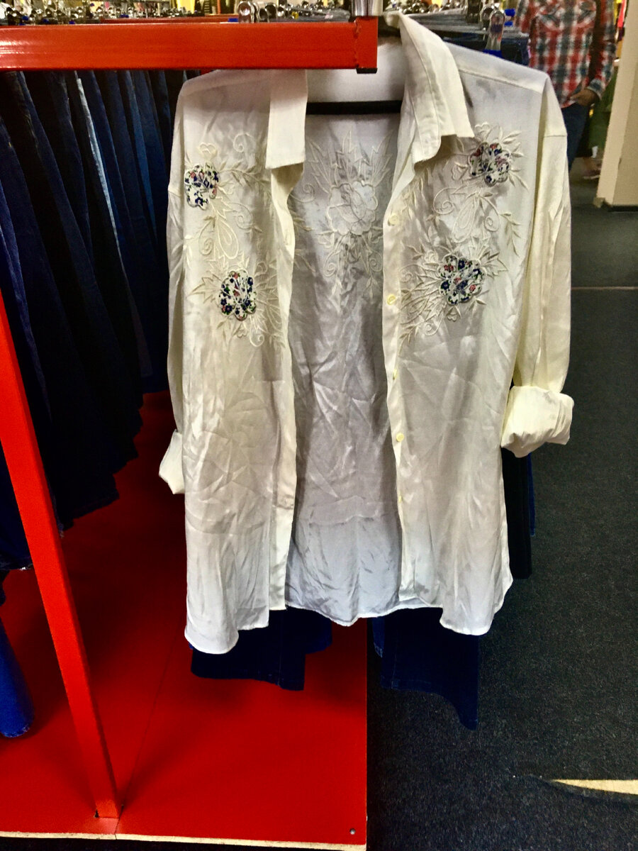 У нас в Челябинске установилась жаркая погода, без летних натуральных вещей никак не обойтись. Ищу в секонде вещи из льна, хлопка, шелка. Нашла белую объемную блузку с вышивкой, вроде как шёлк. 250р. Красивый итальянский топ ярко изумрудного цвета из тончайшего шелка с подкладкой из вискозы. Очень даже привлекательно. Понравился комбинезон из вискозы и хлопка защитного цвета с позолотой, но немного маловат. 500р Розовое хлопковое платье без рукавов за 350р, фасон по фигуре, в юбка в складочку. Юбка шёлковая с цветочными узорами , 250р И белый шелковый топ за 250р Получился хороший комплект, но вырез довольно откровенный. Составлю ещё один образ из льняных прямых брюк за 250р + хлопковая футболка + шелковый платок. Мне очень нравится. Нашла платье из плотного хлопковой денима. 750р Хорошенький сарафан на тоненькую девушку из хлопка Понравилась шёлковая футболка, думаю, в ней будет не жарко. Чтобы вы мне посоветовали приобрести из всего представленного?