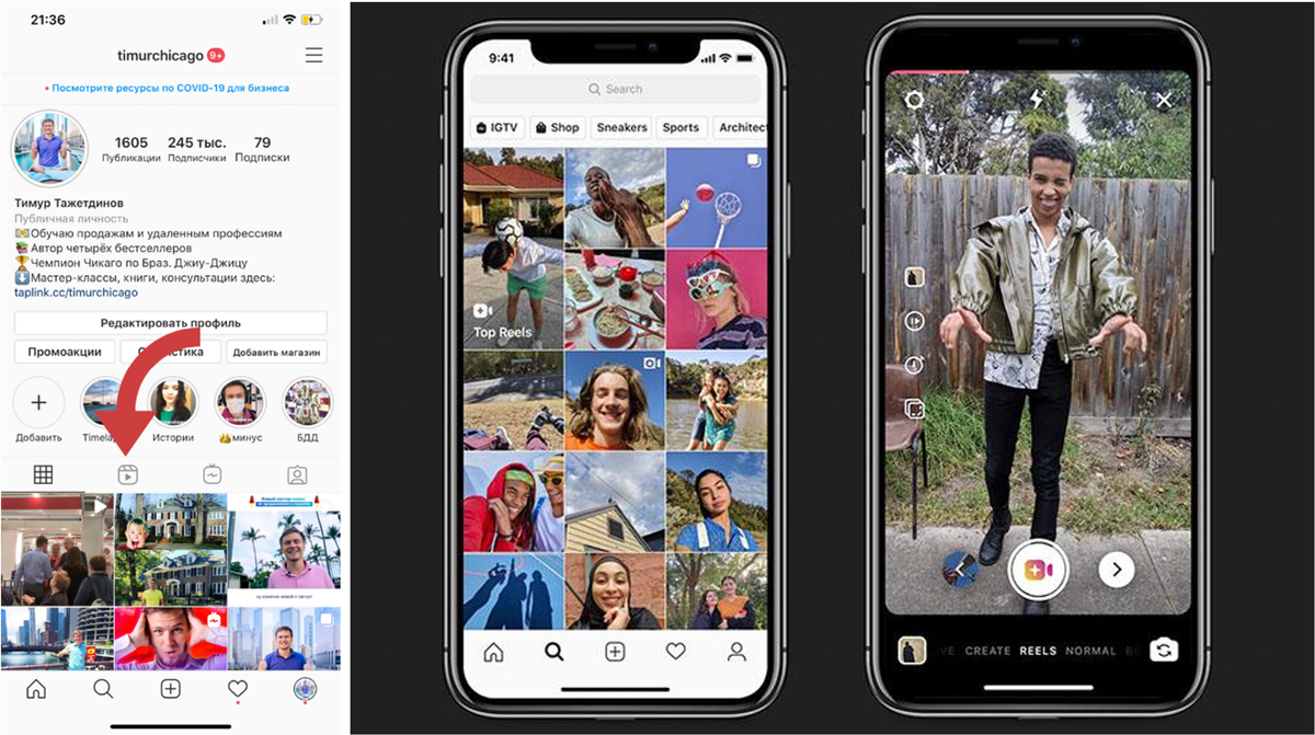 Фактически это аналог ТикТока. То есть к обычным публикациям, видео, сторис и IGTV Инстаграм решил добавить ТикТок Рилс.