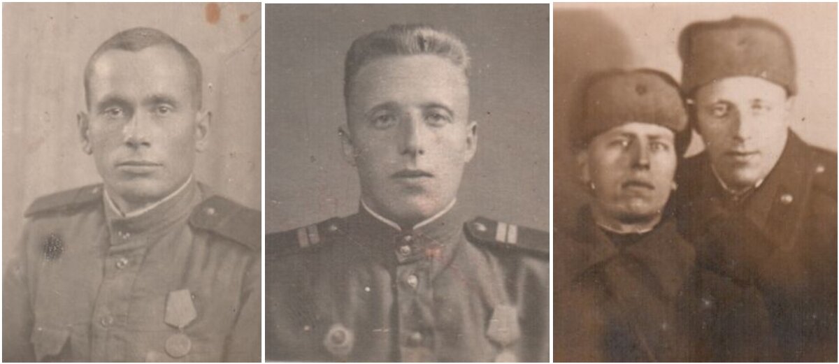 В годовщину начала войны вспомнил всех из семьи, кто на ней был. Дядю Мефодия, дядю Яшу, дедушку... Все, увы, уже спят на погостах вечным сном... Из их поколения жива только тётя Аня, но в войну она была подростком и в армии не служила. Хотя у них в Севастополе понятия тыла почти не было и опасно было всем... Году в 2005-м, одолжив у Дениса (makhanko) диктофон, я взял у дедушки интервью, самое первое моё «ветеранское» интервью. На сайте «Я Помню» оно появилось позже, уже после его кончины 5 апреля 2009 года. Дедушка воевал прожектористом, связистом: под Ленинградом, на Волховском фронте. Подробнее... Дополняю дедушкин рассказ несколькими фото 1944-45 годов из его архива. Подписаны только два. На обороте первого: «Любимому другу Григорьеву Дмитрию Кирилловичу от друга Покомарина Константина Михайловича, г. Новгород, 10/10-44 г.» На обороте второго: «На добрую память Тале (т.е. моей бабушке Наталье) от Димы. 20.07.45 Новгород». На третьем, кажется, рядом с дедом тоже Покомарин и, думаю,